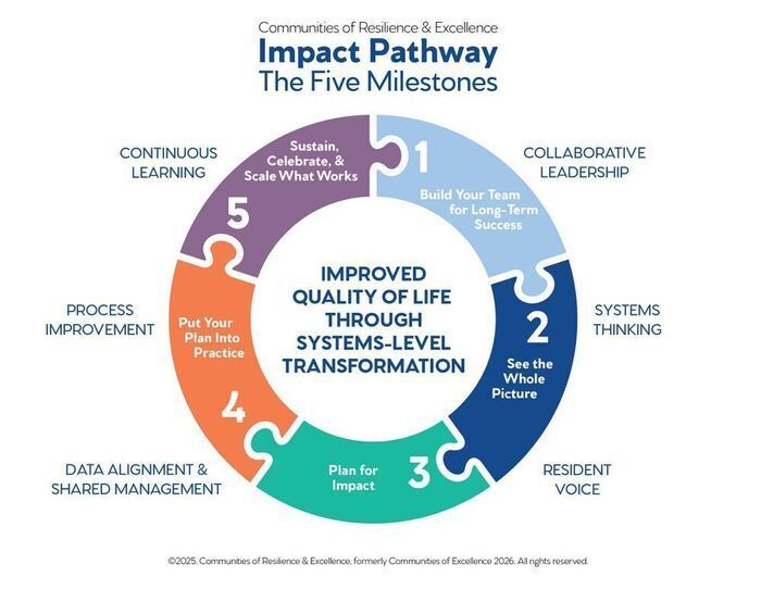 The pathway guides communities through five proven milestones rooted in systems thinking and data-driven collaboration.